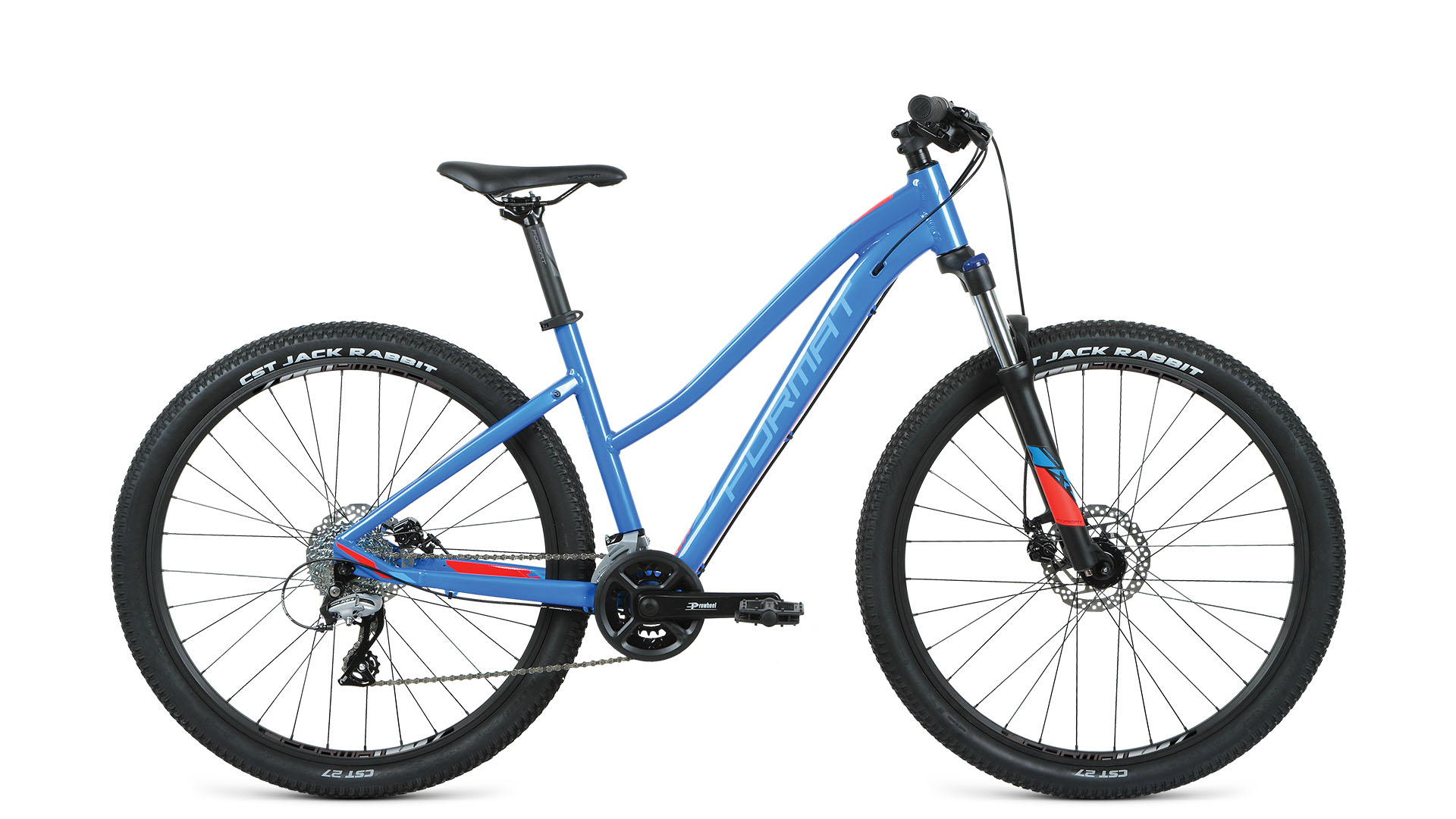 Бренд FORMAT Модель 7714 27,5 Год 2021 Тип вилки Амортизационная (пружина) Ход вилки, мм 100 Вилка/регулировки Format 688-TNL 27.5" 100мм, пружинная, 9x100мм. Регулировка предварительной нагрузки, блокировка Обода Format Double Wall, 32Н, Schrader | Алюминиевый двустеночный Покрышки CST Jack Rabbit, 27.5x2.25" | Cталь Тормоза Дисковые механические Грипсы Format Lock-On Тормоз Shimano M805, 160/160мм Уровень оборудования Любительский Шифтеры Shimano EF500 Переключатель передний Shimano Altus M315 Переключатель задний Shimano Acera M360 Кассета Sun Race CSM55, 11-32T, 8-Speed | 8: 11-32T Цепь KMC Z8 Каретка Kenli KL-08A, картриджная Шатуны Prowheel TM-CY10, 36x22T, 170мм | 2: 36x22T Количество скоростей 16 Руль Format Trekking, ширина: 680мм, подъём: 20мм, диаметр: 31.8мм Рулевая колонка Kenli, полуинтегрированная, ZS 44/28.6|ZS 44/30.0 Вынос Format Trekking, угол: 6°, диаметр: 31.8мм, длина: 60мм Седло Format Woman/Trekking Подседельный штырь Format, диаметр: 30.4мм, длина: 350мм Педали Пластиковые Втулка передняя Format, пром. подшипники, 9x100мм, эксцентрик Втулка задняя Format, пром. подшипники, 10x135мм, эксцентрик -